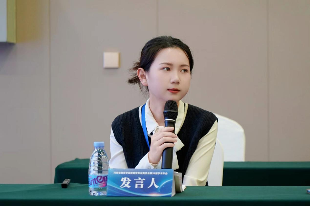 在“分论坛二:数智时代的教育变革探索”中,研究生常美慧以《重构数智时代的教师教育——基于美国演进逻辑的考察》为题进行了汇报。她通过梳理美国数智时代教师教育的演进历程、政策导向及实践模式,为我国数智时代教师教育的改革与发展提供了有益借鉴,获得了现场评委的高度评价。