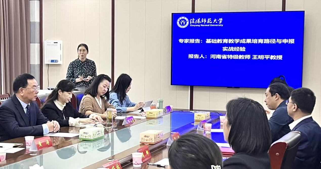2025年9月27日下午,信阳师范大学教育科学学院402会议室举办了一场主题为“河南省基础教育教学成果奖培育与申报经验”的专题研讨会。本次会议由信阳师范大学课程与教学改革研究所主办,旨在促进基础教育教学成果的培育与申报工作,提升区域教育教学质量与影响力。